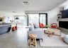 An innovative light court insertion to the middle of the home also helps filter both sun and light right through both floor levels, a sense of volume is felt as you ascend the feature floating open tread timber staircase through this dramatic space, thus adding even more illusion to the size and feel of this home. The utilisation of an array of both raw and refined materials like the ground concrete floor throughout is complemented by the natural feel of the oak timber cabinetry, resulting in a masterly crafted contemporary home adored by this family.