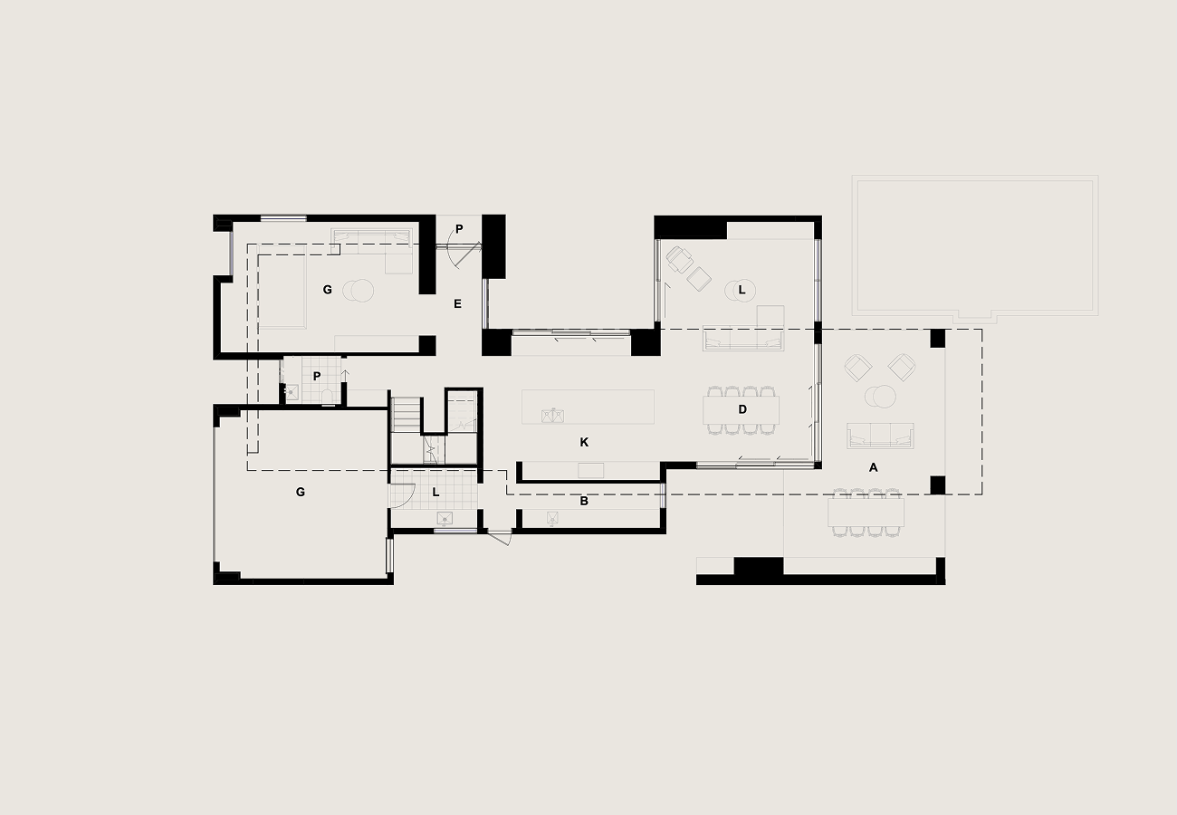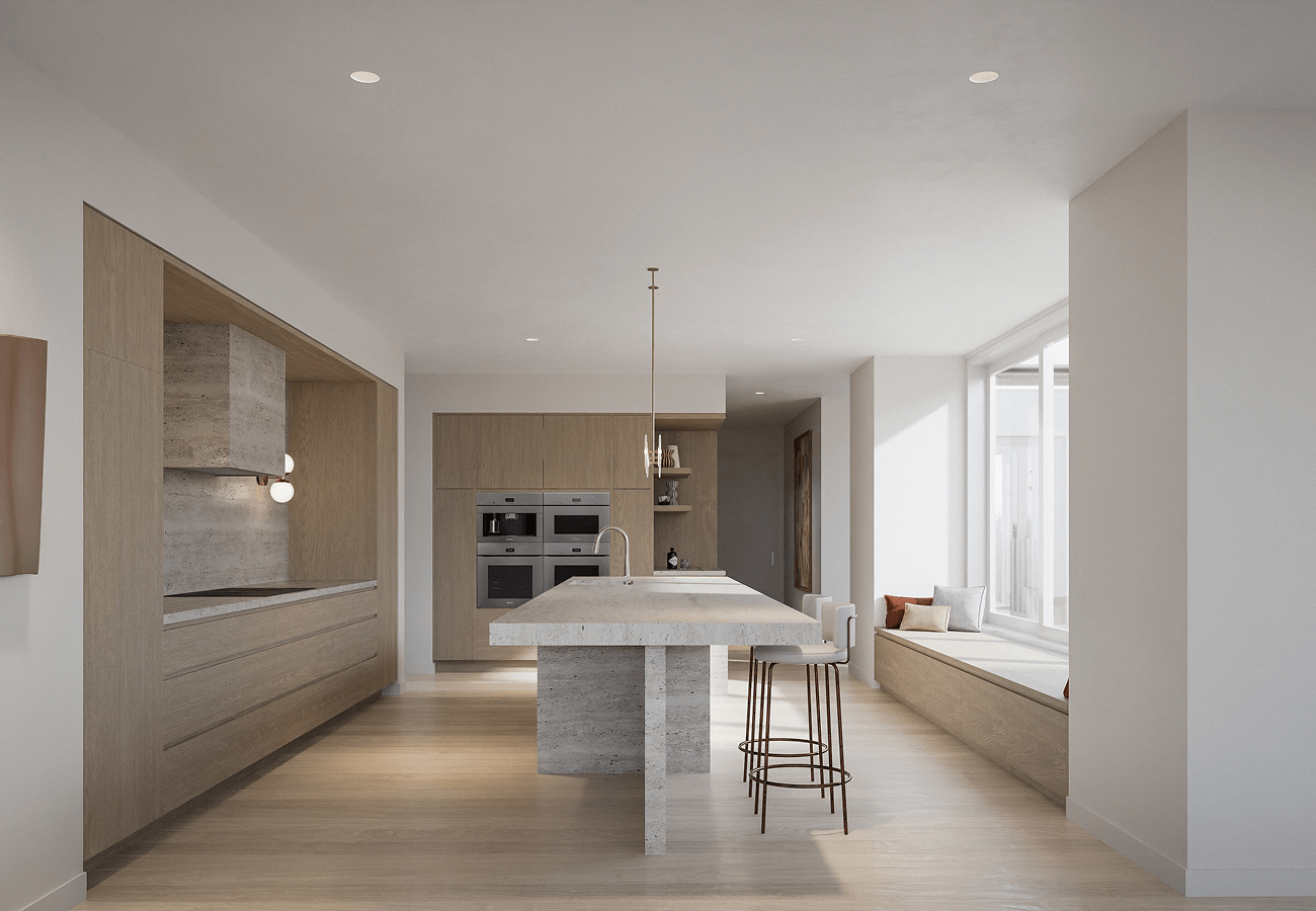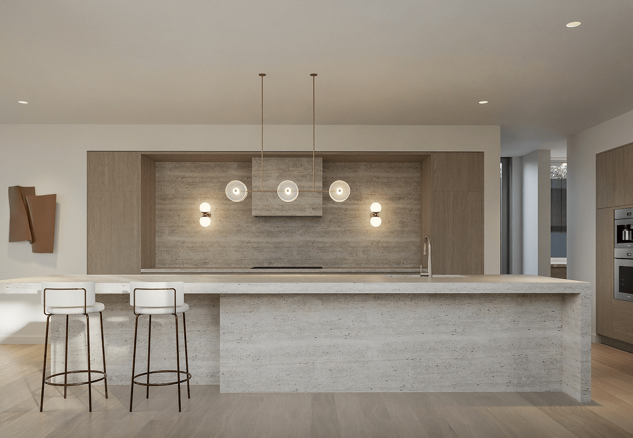 Functionality and entertaining were central to the design, with open, flowing spaces that allow the home to adapt seamlessly from everyday family living to larger gatherings. The facade is carefully composed to frame uninterrupted views of the bay, bringing the beauty of the surroundings into the home.