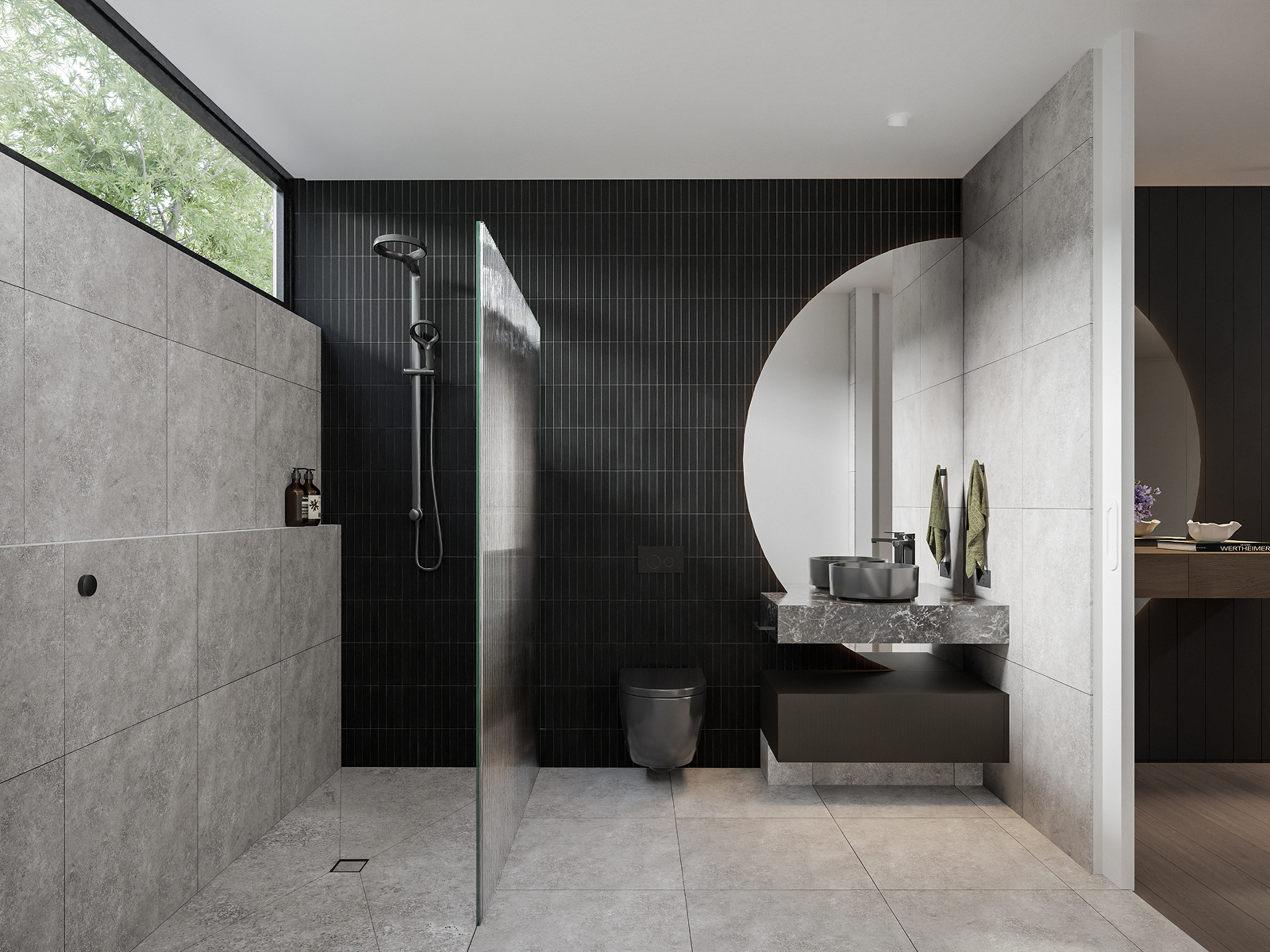 This project stands out in its streetscape with its contrasting dark and concrete tones. A dominant feature of this home is the raised ceiling and highlight windows in the rear living area, creating a striking visual as you move through the home’s main thoroughfare. Internally, diverse palette of materials and colours brings vibrance and energy to the spaces, a direct reflection of the clients and their passion for creating their dream home.